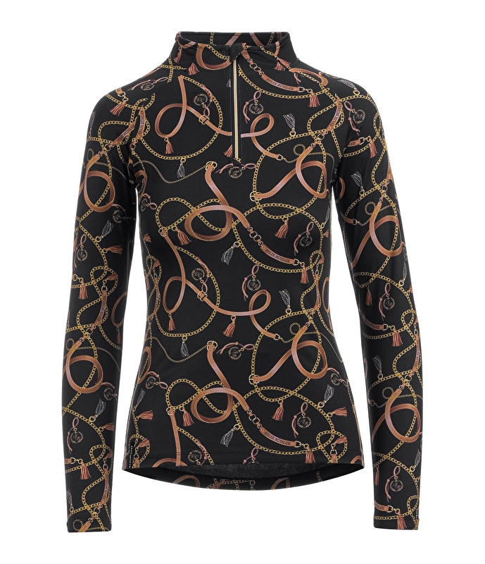 Niezwykle szykowna, funkcjonalna koszulka z eleganckim nadrukiem na całej powierzchni. Oddychający i szybkoschnący materiał. Raglanowe rękawy, stójka z zamkiem błyskawicznym i osłoną podbródka. 88% poliester, 12% elastan.