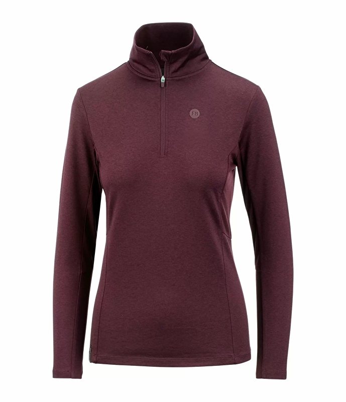 Niezwykle elastyczna, miękka koszula z długimi rękawami w melanżowym stylu ze stójką i zamkiem błyskawicznym z osłoną podbródka. Oddychająca i szybkoschnąca. Nadruk Felixa Bühlera na piersi i bocznych wstawkach z siateczki. Wysokiej jakości elastyczny materiał jest gładki na zewnątrz i chropowaty od wewnątrz. 94% poliester, 6% elastan.