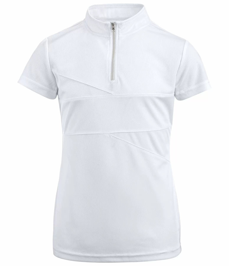 Sportowa dziecięca koszulka konkursowa wykonana z oddychającego i szybkoschnącego materiału funkcjonalnego. Krój unisex, stójka zapinana z przodu na zamek, z przodu skrzyżowane wstawki w kontrastowym kolorze, nadruk logo STEEDS z tyłu.