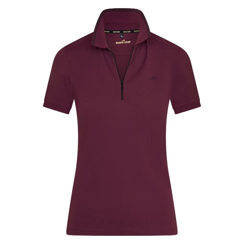 Koszulka jezdziecka euro star. bordowa piękny kolor. Pięknie wykonana z technicznego elastycznego i wygodnego materiału. Na piersi ma małe logo głowy konika (logo euro star) które jest w kryształkach. Z tyłu przez plecy przebiega pas siateczki i rękawki równiez z siatki. Koszulka nowa z metką. Zdecydowanie to bestseller, który pokochały amazonki. Za funkcjonalność i wygląd.