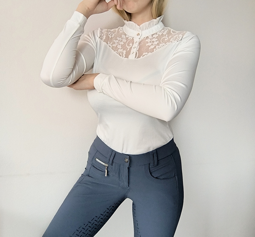 Koszulka konkursowa Jh collection. Kremowo śmietankowo. To nie czysta biel,a tony beżowe. Szukasz wyjątkowej koszuli? Takiej która robi wrażenie? Zerknij właśnie na tą koszule od Jh. Przyciąga każde oko. Ma piękną koronkę która wyróżnia koszule na tle innych. Ponadto nie gryzie ona i nie drapie. Materiał jest ultra przyjemny dla skóry, pięknie dopasowuje się do sylwetki ciała. Nie odstaje. Zdecydowanie warta polecenia. Stan bardzo dobry. Do ewentualnego przeprania Rozm XS szerokość 40 cm x2 mocno się rozciąga, dl całkowita od ramienia i rękawa 60 cm