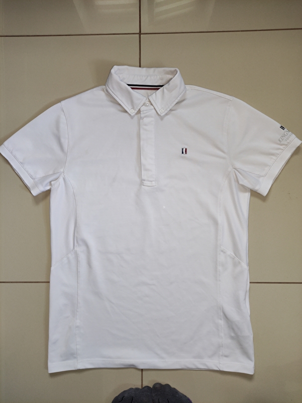 Sprzedam koszulkę konkursowa/polo firmy Kingsland w kolorze białym, rozmiar 40. Stan bdb. Cena 50zł + wysyłka. Wszelkie przebarwienia to wina światła.