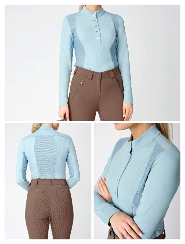 Koszulka jeździecka treningowa Ps of sweden Cecile. Piękny błekitny kolor. Ma siateczkę w wielu miejscach dzieki czemu jest oddychajaca a przy tym Elastyczna, wygodna w noszeniu. Materiał cienki lekki. Świetna koszulka na każdą porę roku. Wybór naszych klientów. Nowa z metką. Rozmiar standardowy