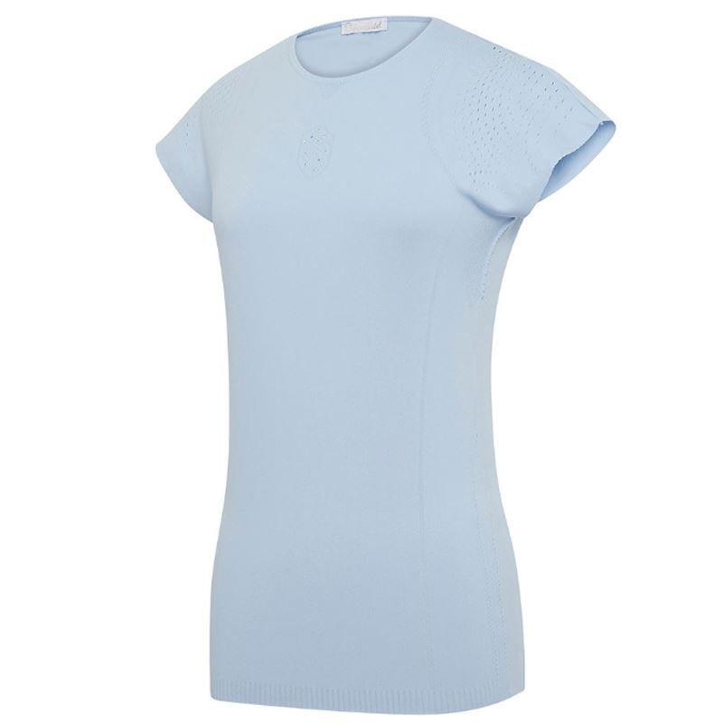 Piękna koszula jeździecka błękitna baby blue Samshield Luana pochodzi z kolekcji na lato 2023. Koszulka damska jest bezszwowa dość ciekawie uszyta i bardzo elastyczna, dzięki czemu idealnie dopasowuje się do ciała. Materiał jest oddychający, dzięki czemu jest bardzo wygodny w noszeniu w ciepłe, letnie dni.