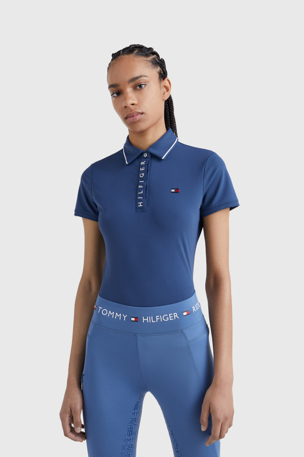 Koszulka jeździecka Tommy Hilfiger Equestrian. Blue Coast kolor. Przyjemny materiał lekko śliski może też wydawać się chłodzący. Zapinana na kryte napki. Wygodna. Elastyczna. Bardzo elegancka i godna polecenia. Nowe z metką. Rozm Xl szerokość 50 cm x2 elastyczne, dl całkowitaod ramienia 62 cm. Cena katalogowa około 340 zł
