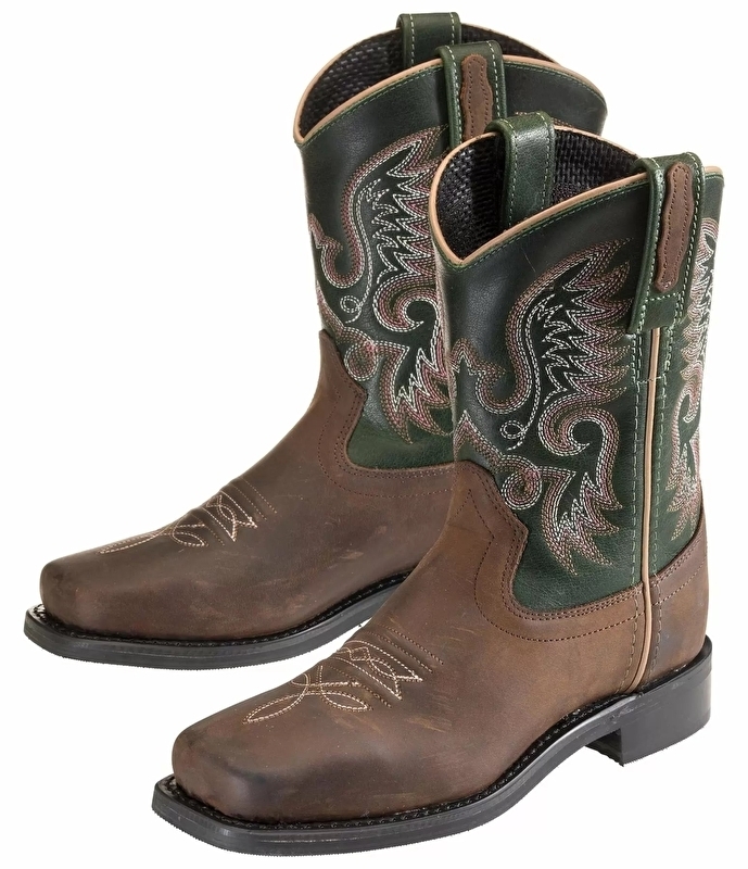 Wysokiej jakości dziecięce kowbojki, buty westernowe z prawdziwej skóry o świetnym dopasowaniu i wyjątkowo wąskiej cholewce. Praktyczny na co dzień w stajni. Z gumową podeszwą.