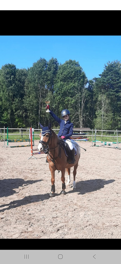 Jest kucem równym wybaczającym błędy jeźdźca, pomagający w skokach. Nie boi sie płotków czy kolorowych desek. W stałym treningu od 4 latka. Objeżdzony na towarzyskich zawodach, naskakany do 90cm.