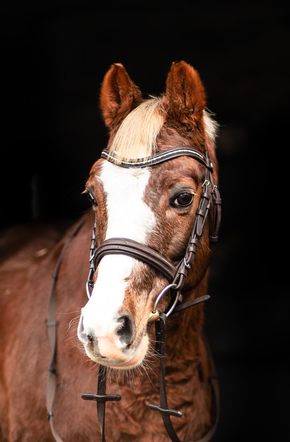 Delikatny na pomoce. Chodzi sam w tereny. Padokowany w stadzie. Chodzi w karuzeli.