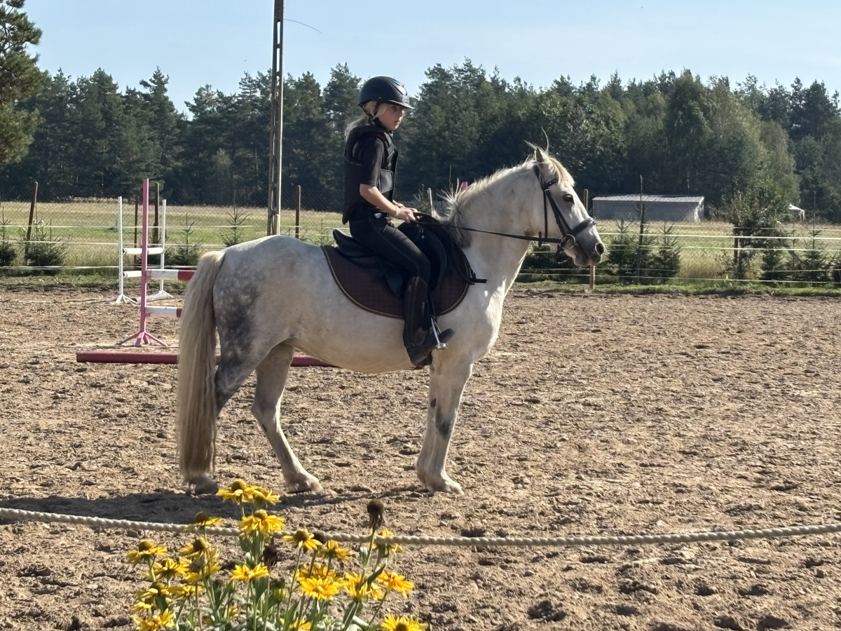 Jest to kucyk idący do przodu, raczej nie nada się dla osób początkujących. Super skacze i daje się prowadzić, jednak jest to kucyk wymagający spokojnej ręki i dobrej równowagi. Boi się kiedy jeździec ma niestabilny dosiad.