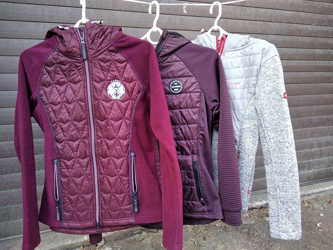 Wszystkie w bdb stanie, bez uszkodzeń. Wymiary w klatce piersiowej -FB bordowa z polarem 47cm, FB fioletowa 45, euro star 46.