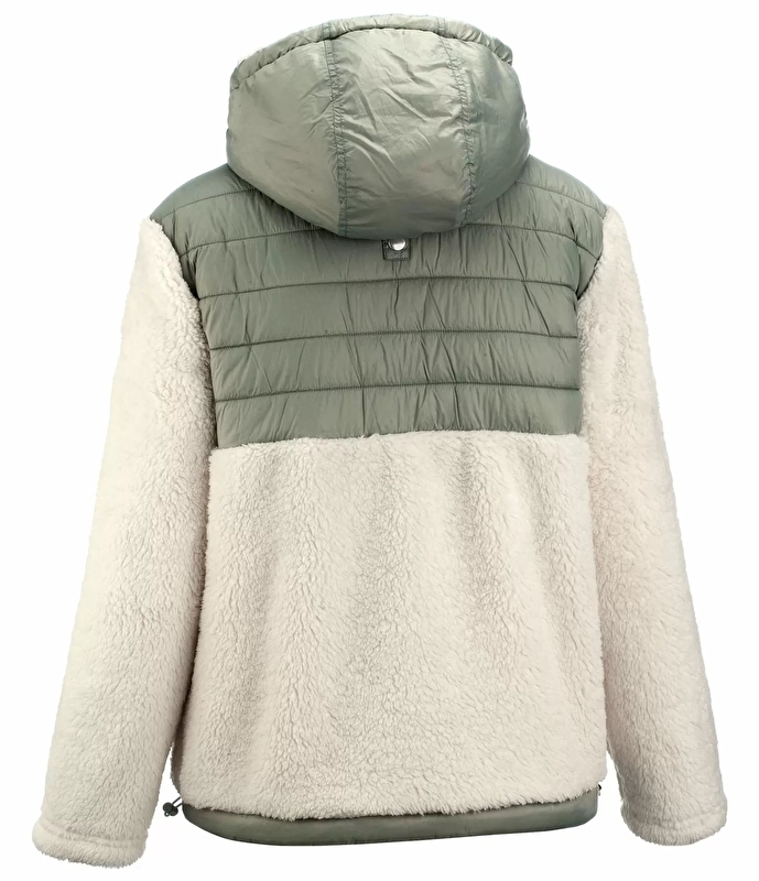 Wygodna kurtka z kapturem wykonana z miękkiego pluszowego futerka połączonego z watowanym nylonem. Wysoko zapinany, regulowany kaptur również podszyty pluszowym futerkiem, duża kieszeń na piersi zapinana na napy, 2 kieszenie na suwak z przodu, regulowany dół i naszywka STEEDS na rękawie.