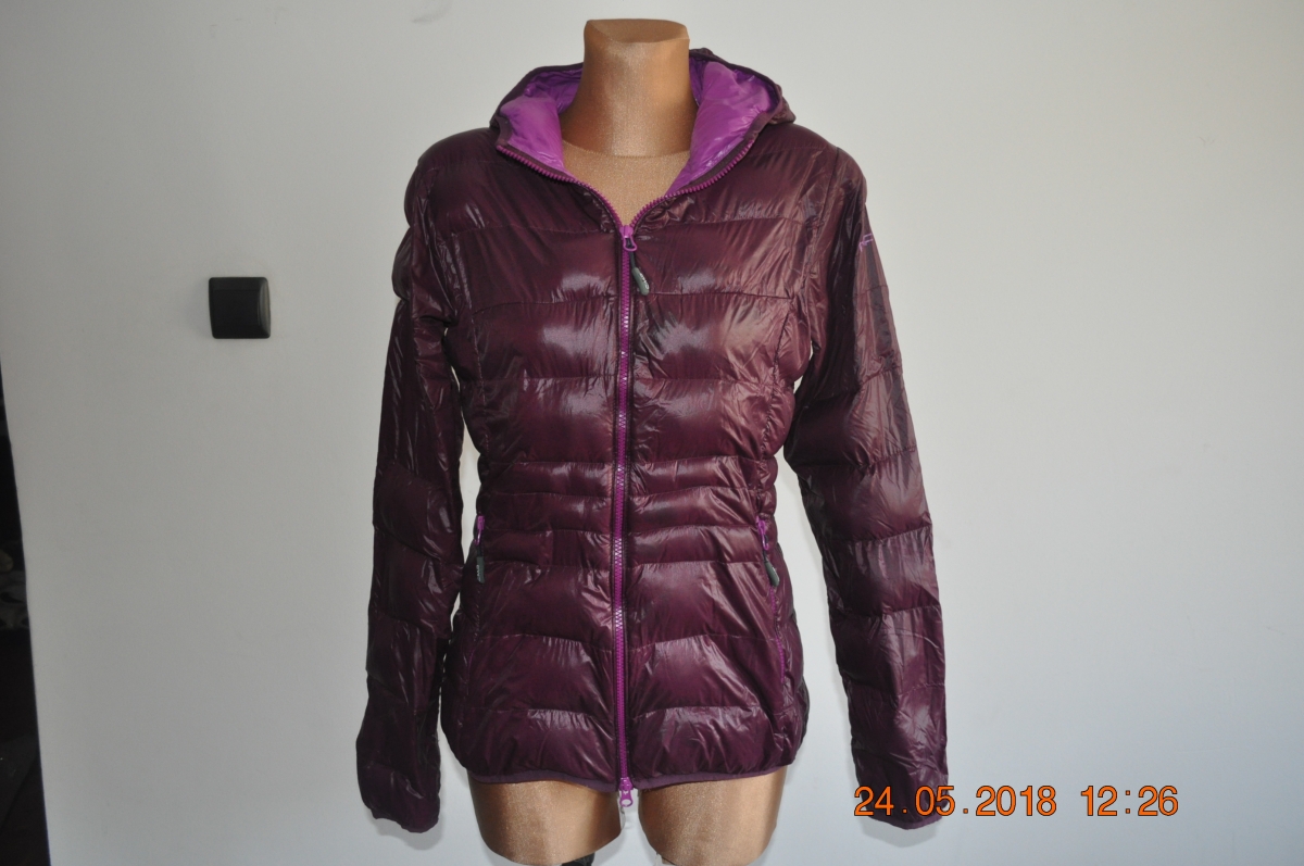 Sprzedam lekką kurtkę marki CMP. Błyszcząca, śliwkowa, z jasną podszewką. Posiada przyszyty na stałe kaptur. Zapinana na zamek. Dwie przednie kieszonki.