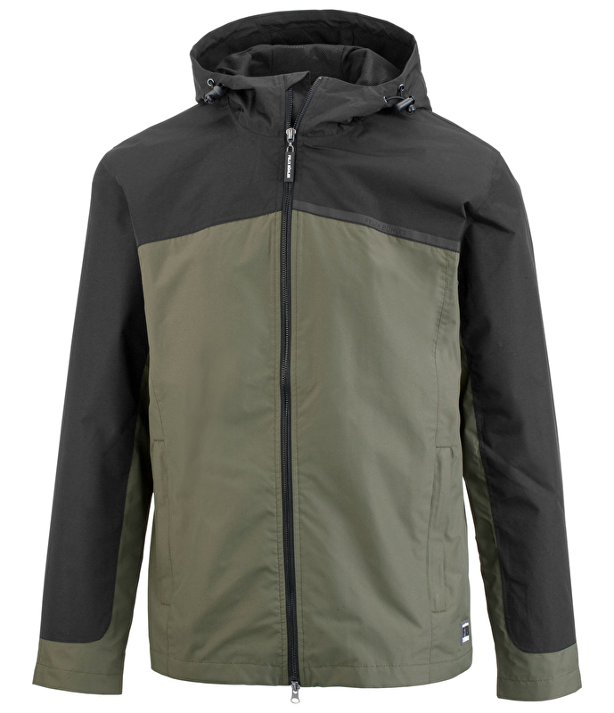 Funkcjonalna męska kurtka z membraną TPU w dwukolorowym wyglądzie z odpinanym kapturem i matowymi czarnymi taśmami. Wiatroszczelna, wodoodporna (3000 słupa wody) i oddychająca. Dwukierunkowy zamek błyskawiczny z przodu w kolorze czarnym i 2 ukryte kieszenie na suwak. Naszywka z logo Felix Bühler na obszyciu. 100% nylon.
