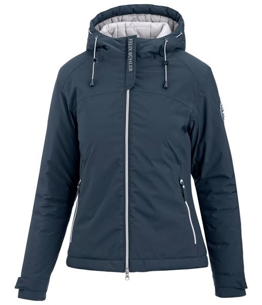 Sportowa i wytrzymała funkcjonalna kurtka jeździecka z kapturem zachwyca pikowanym i skutecznie izolującym ciepło wypełnieniem imitującym puch, a także wodoodpornymi i wiatroszczelnymi właściwościami. Dzięki oddychalności kurtki jeździeckiej jeździec może liczyć na komfortowe uczucie ciała nawet podczas wysiłku. Kaptur kurtki jeździeckiej można regulować indywidualnie za pomocą sznurka. Mankiety zapinane na rzep chronią przed uciążliwym zsuwaniem się i przedostawaniem się zimnych przeciągów. Dodatkowo pas można regulować na szerokość za pomocą elastycznego sznurka, chroniąc w ten sposób jeźdźca przed zimnem w stajni. Dzięki praktycznym detalom, takim jak dwie zapinane na zamek przednie kieszenie, telefony komórkowe, klucze itp. Można bezpiecznie schować podczas jazdy. Dwukierunkowy zamek błyskawiczny z przodu zwiększa wygodę kurtki jeździeckiej i gwarantuje jeźdźcowi maksymalną swobodę ruchów w siodle. Napis Felix Bühler na osłonie suwaka i naszywka Felix Bühler na ramieniu uzupełniają funkcjonalną kurtkę z kapturem.