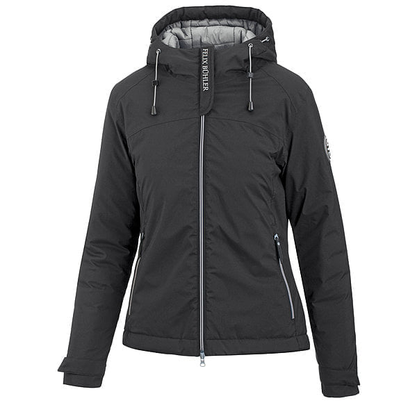 Sportowa, bardzo elastyczna kurtka jeździecka. Dwukierunkowy suwak z przodu, 2 przednie kieszenie na suwak, regulowany dół i szerokość rękawów oraz naszywka Felix Bühler na rękawie. Regulowany kaptur podszyty siateczką, który można przyczepić z tyłu. 100% poliestru.