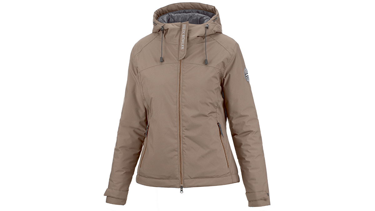 Sportowa i wytrzymała funkcjonalna kurtka jeździecka z kapturem zachwyca pikowanym i skutecznie izolującym ciepło wypełnieniem imitującym puch, a także wodoodpornymi i wiatroszczelnymi właściwościami. Dzięki oddychalności kurtki jeździeckiej jeździec może liczyć na komfortowe uczucie ciała nawet podczas wysiłku. Kaptur kurtki jeździeckiej można regulować indywidualnie za pomocą sznurka. Mankiety zapinane na rzep chronią przed uciążliwym zsuwaniem się i przedostawaniem się zimnych przeciągów. Dodatkowo pas można regulować na szerokość za pomocą elastycznego sznurka, chroniąc w ten sposób jeźdźca przed zimnem w stajni. Dzięki praktycznym detalom, takim jak dwie zapinane na zamek przednie kieszenie, telefony komórkowe, klucze itp. Można bezpiecznie schować podczas jazdy. Dwukierunkowy zamek błyskawiczny z przodu zwiększa wygodę kurtki jeździeckiej i gwarantuje jeźdźcowi maksymalną swobodę ruchów w siodle. Napis Felix Bühler na osłonie suwaka i naszywka Felix Bühler na ramieniu uzupełniają funkcjonalną kurtkę z kapturem.