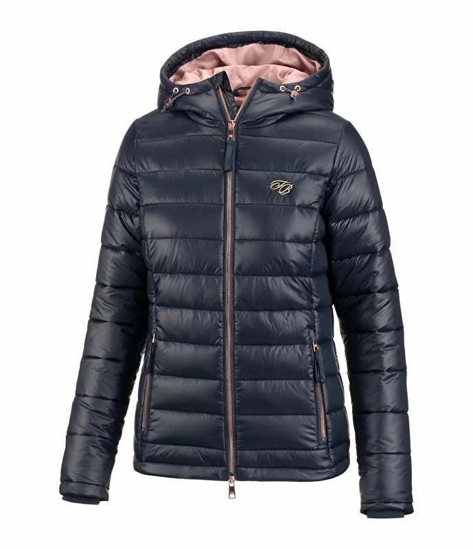 Bardzo lekka i pikowana kurtka jeździecka z kapturem i wypełnieniem z wysokiej jakości imitacji puchu. Wewnętrzna podszewka z subtelnym wytłoczonym wzorem. Kryty dwukierunkowy zamek błyskawiczny z przodu, 2 przednie kieszenie zapinane na zamek, regulowana szerokość u dołu i regulowany kaptur, który można przymocować z tyłu. Mankiety wykonane z miękkiego prążkowanego materiału. Połyskujący haft na piersi. 100% nylon.