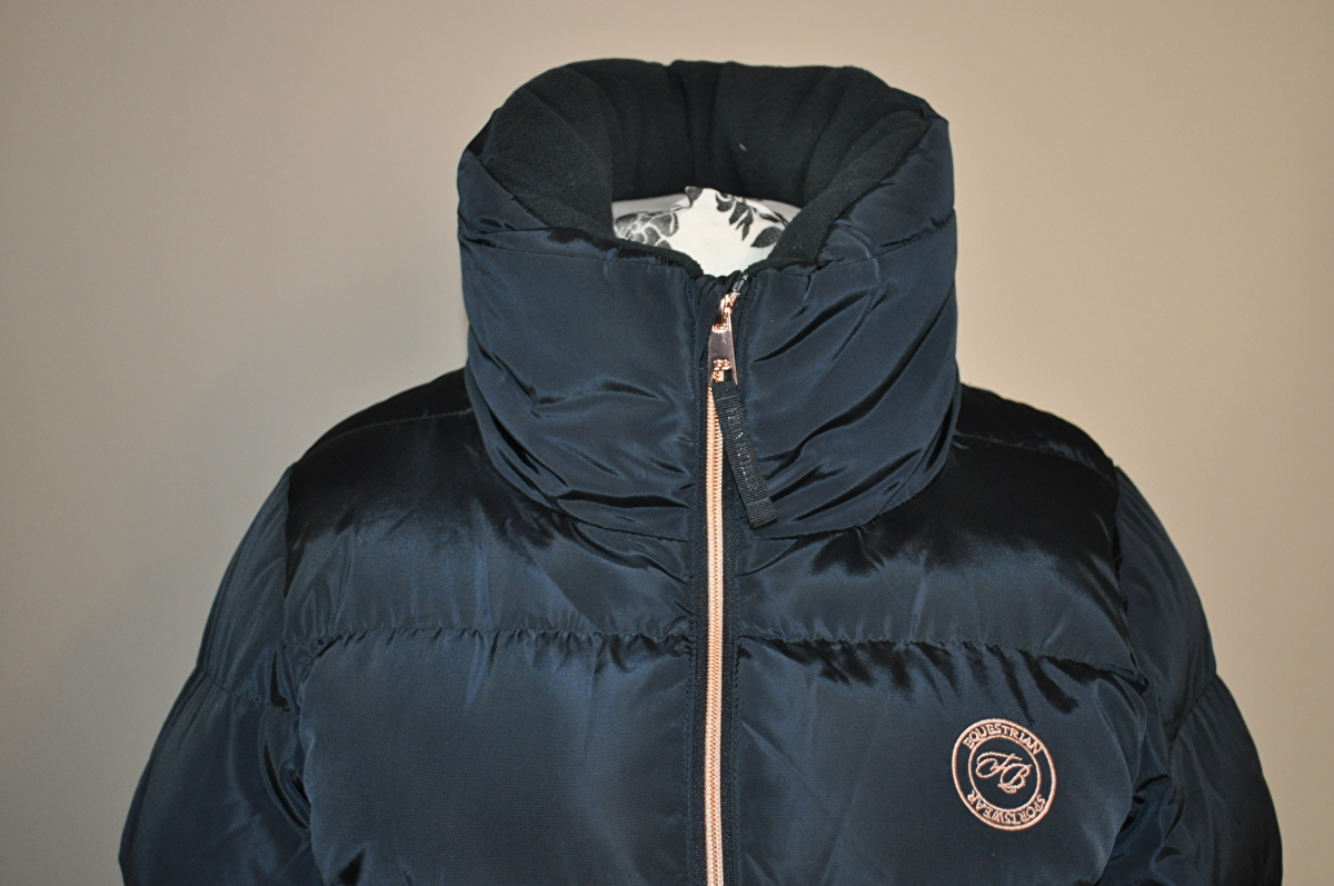 Sportowa, elegancka i wiatroszczelna damska pikowana kurtka jeździecka z wyjątkowo wysokim kołnierzem podszytym miękkim polarem i dłuższym wycięciem z tyłu. Ciepłe wypełnienie z imitacji puchu, mankiety z miękkiej dzianiny, podszyty dwukierunkowy zamek z przodu, 2 kieszenie na zamek z przodu i 1 kieszeń na zamek od wewnątrz. Wysokiej jakości haft Felixa Bühlera na piersi. 100% poliestru.