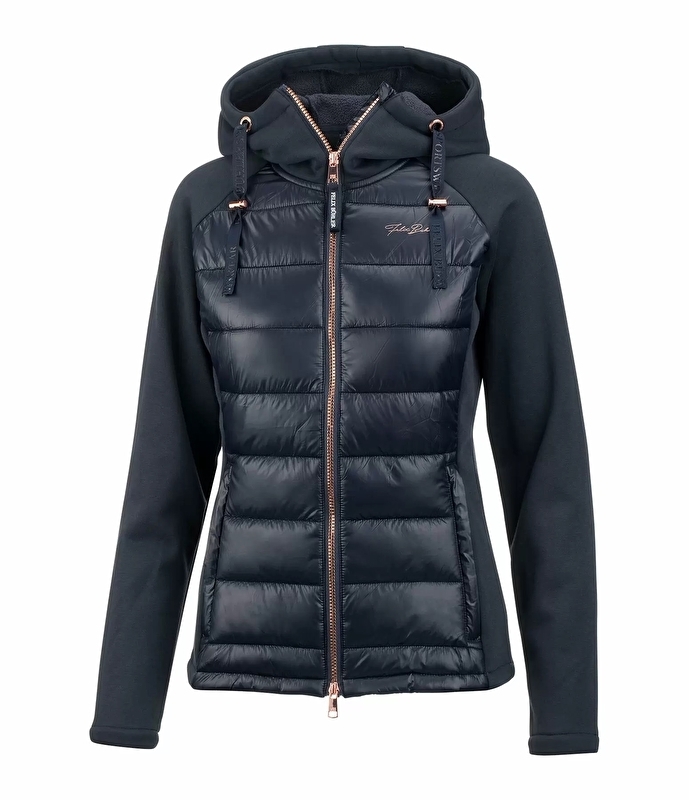 Lekka kurtka jeździecka z kapturem i funkcjonalną cholewką wykonaną z miękkiego nylonu. Optymalna swoboda ruchów dzięki bocznym wstawkom, tyłowi i rękawom z elastycznego materiału. Miękka wyściółka z imitacji puchu z przodu zapewnia dodatkowe ciepło. Regulowany kaptur z możliwością podpięcia z tyłu. Dwukierunkowy kryty suwak z przodu z osłoną podbródka, 2 kryte kieszenie na suwak z przodu i nadruk Felixa Bühlera na piersi. Materiał wierzchni: 100% nylon, rozciągliwość: 64% poliester, 36% bawełna.