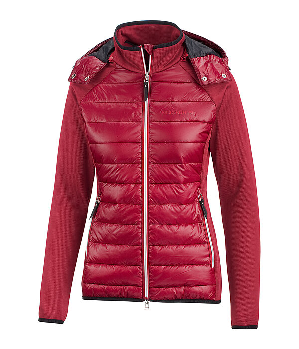 Lekka kurtka jeździecka z kapturem. Wysokiej jakości wyściółka z imitacji puchu zapewnia wysoki poziom komfortu. Kołnierz i panele boczne wykonane ze strukturalnego polaru. Odpinany, regulowany kaptur, który można przypiąć również z tyłu. 2 kieszenie na zamek z przodu, dwukierunkowy zamek z przodu i znaczek Felix Bühler z przodu. Kołnierzyk, dół i mankiety obszyte gumką. Materiał wierzchni: 100% nylon, wstawki z polaru: 100% poliester.