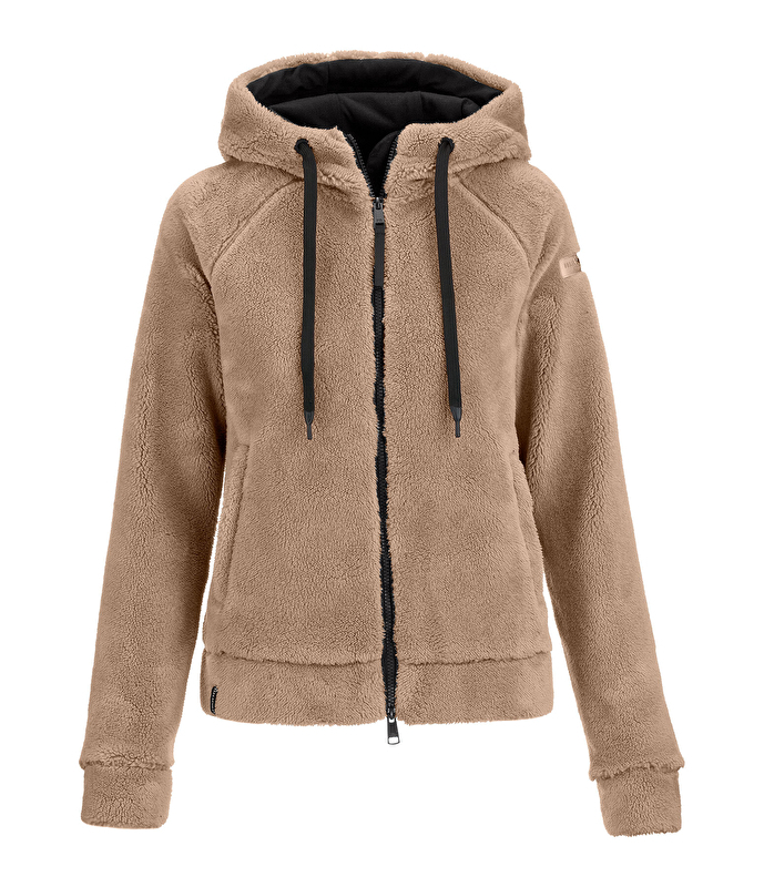 Wygodna pluszowa kurtka polarowa z regulowanym kapturem, krytym dwukierunkowym zamkiem błyskawicznym i 2 ukrytymi kieszeniami z przodu zapinanymi na zamek. Raglanowe rękawy, wewnętrzna podszewka z miękkiego jerseyu i urocza taśma Felixa Bühlera z metalowym serduszkiem na rękawie.