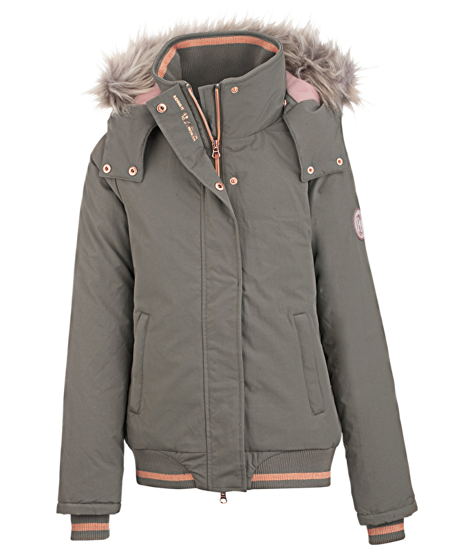 Sportowa dziecięca kurtka jeździecka z ciepłą polarową podszewką od wewnątrz. 2-kierunkowy suwak z przodu w kontrastującym kolorze, 2 kieszenie na suwak i kieszeń wewnętrzna na suwak. Praktycznie odpinany kaptur ze świetnym odpinanym sztucznym futerkiem. Błyszczące Szczegóły zamki i dzianinowe ściągacze. Materiał jest odporny na wiatr i wodę. 100% nylon.