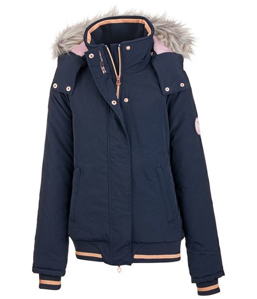 Sportowa dziecięca kurtka jeździecka z ciepłą polarową podszewką od wewnątrz. 2-kierunkowy suwak z przodu w kontrastującym kolorze, 2 kieszenie na suwak i kieszeń wewnętrzna na suwak. Praktycznie odpinany kaptur ze świetnym odpinanym sztucznym futerkiem. Błyszczące Szczegóły zamki i dzianinowe ściągacze. Materiał jest odporny na wiatr i wodę. 100% nylon.