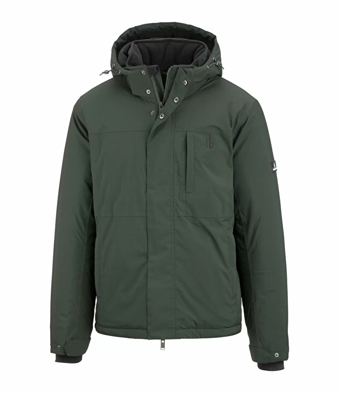 Funkcjonalna męska kurtka zimowa z wysokim kołnierzem i kapturem. Regulowany kaptur wyłożony jest miękkim polarem i w razie potrzeby można go odpiąć za pomocą zamka błyskawicznego lub przymocować z tyłu za pomocą zatrzasku. Wodoodporny (8000 mm), wiatroszczelny i oddychający. Ciepło podszyty, kryty dwukierunkowy zamek błyskawiczny z osłoną podbródka, 2 ukryte kieszenie zapinane na zamek z przodu i ukryta kieszeń na piersi zapinana na zamek. Na ramieniu naszywka Felix Bühler, mankiety z elastycznego materiału, możliwość regulacji szerokości obszycia i rękawa. Wewnętrzna podszewka z nadrukiem Felixa Bühlera na całej powierzchni. 100% poliestru.