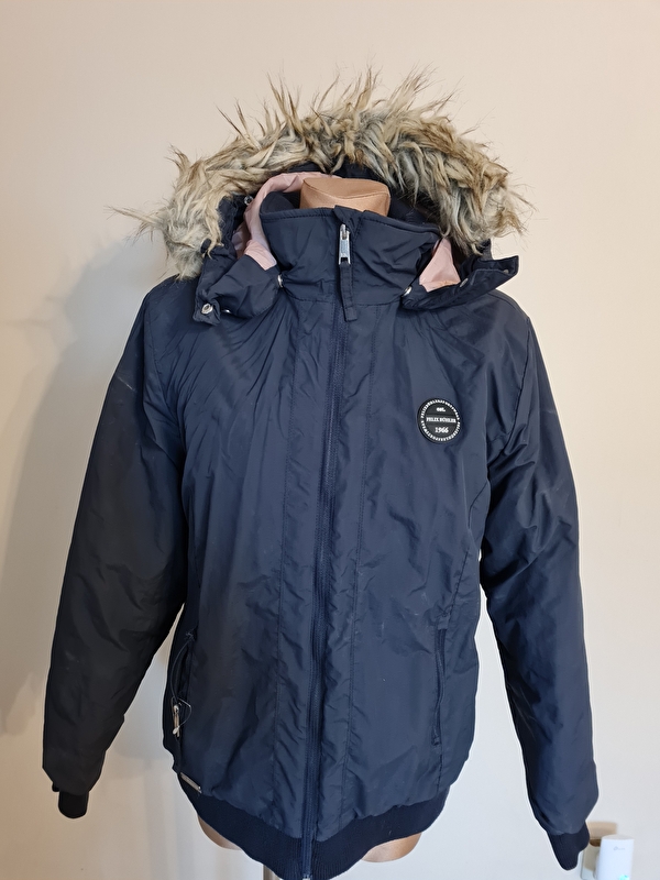 Kurtka sprawna, posiada przybrudzenia widoczne na zdjęciach. Nie wiem czy sie spiora. W bocznych kieszonkach zepsute zameczki.