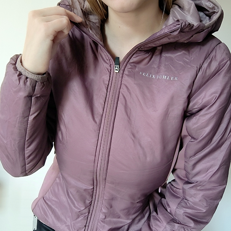 Kurtka jezdziecka przejściowa Felix Bühler. Lekka z materiałem. Od spodu na polarze. Brudny róż kolor. Wygodna. Stan dobry. Posiada kilka zabrudzen, większość Niknie w kolorze ale po dokładnym przyjrzeniu się można je dostrzec. Kaptur spory. rozm S szerokość 45 cm x2 dl całkowita od ramienia 60 cm Dl rękawa od pachy 50 cm
