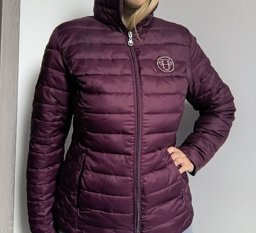 Kurtka jezdziecka przejściowa lekko puchowa Harcour. Bordowy piękny kolor. Bardzo ładnie leży na sylwetce. Jest komfortowa i wygodna w noszeniu. Kieszenie podszyte polarem na zamek. Stan bardzo dobry. Rozmiar L szerokość 50cm x2 dl całkowita od ramienia 65 cm Dl rękawa od pachy 48 cm