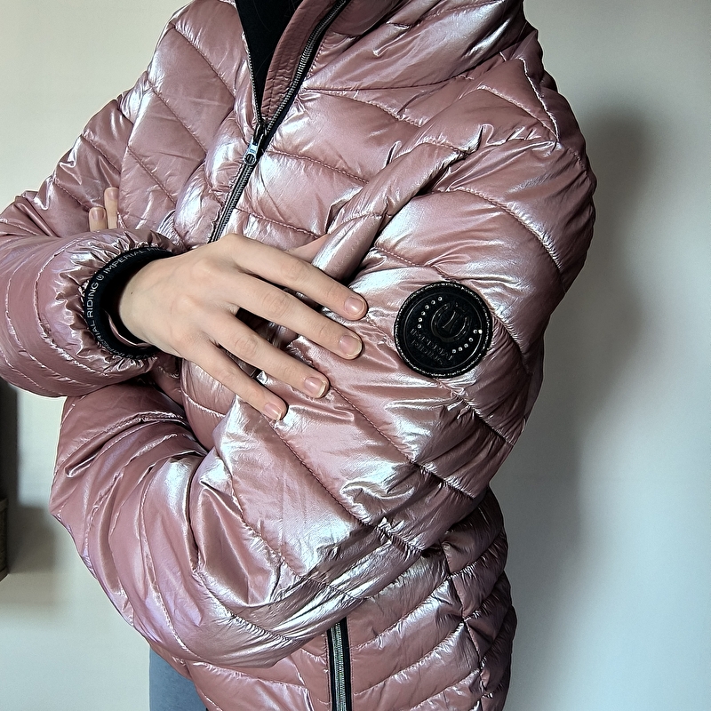 Sportowa damska kurtka jeździecka marki Imperial Riding z kolekcji jesień/zima 2021. Piękny kolor rózowy mieniacy się. łączy w sobie wiele funkcjonalnych cech z bardzo wysokim komfortem noszenia. Dół, kołnierz i mankiety mają elastyczne wykończenie z nadrukowanym napisem Imperial Riding, dzięki czemu kurtka nie zsuwa się łatwo. Dwukierunkowy zamek błyskawiczny umożliwia szybkie i łatwe zakładanie i zdejmowanie. Boczne kieszenie są również wyposażone w zamek błyskawiczny, dzięki czemu można bezpiecznie schować drobne przedmioty. Syntetyczny materiał tej kurtki jest oddychający, dobrze magazynuje ciepło ciała, a także zatrzymuje zimne powietrze na zewnątrz. Łatka na lewym ramieniu i eleganckie przeszycia rozluźniają ogólny wygląd i sprawiają, że kurtka naprawdę przyciąga wzrok.