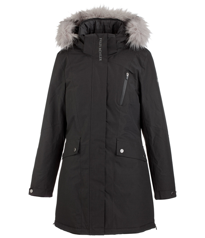 Niezwykle funkcjonalna i super zrobiona kurtka jeździecka z kapturem wykonana z wytrzymałego, wysokiej jakości materiału wierzchniego. Świetne uczucie! Bardzo wodoodporna (10000 mm), wiatroszczelna i oddychająca (5000 MVP). W pełni pikowana od wewnątrz, z bardzo ciepłą podszewką ze sztucznego puchu. Kaptur jest regulowany i tak samo odpinany, jak sztuczne futro na kapturze. Ukryty dwukierunkowy zamek błyskawiczny z przodu, 2 kieszenie z klapką na zatrzaski, 2 boczne zamki jezdne z nadrukiem Felix Bühler, 1 wewnętrzna kieszeń na suwak, regulowana szerokość rękawa, elastyczny element odciągowy na końcach rękawów. 60% bawełna, 40% poliester.