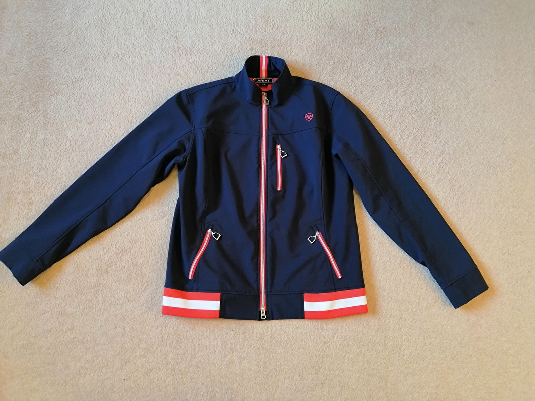 Na zewnątrz trzy kieszonki zapinane na zamek. Przy zameczkach ozdobne zawieszki w kształcie strzemion.