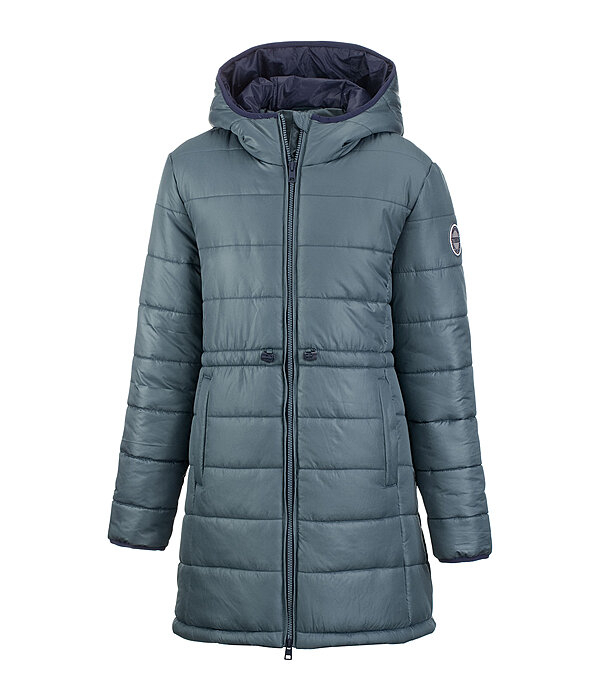 Super ładny dziecięcy płaszcz do jazdy konnej z kapturem i ciepłym wypełnieniem z imitacji puchu. Podszyty dwukierunkowy zamek błyskawiczny z przodu z osłoną podbródka, 2 ukryte kieszenie z przodu, regulowana talia i rozcięcie z zamkiem błyskawicznym z tyłu. Mankiety i kaptur obszyte kontrastowym kolorem. 100% poliestru.