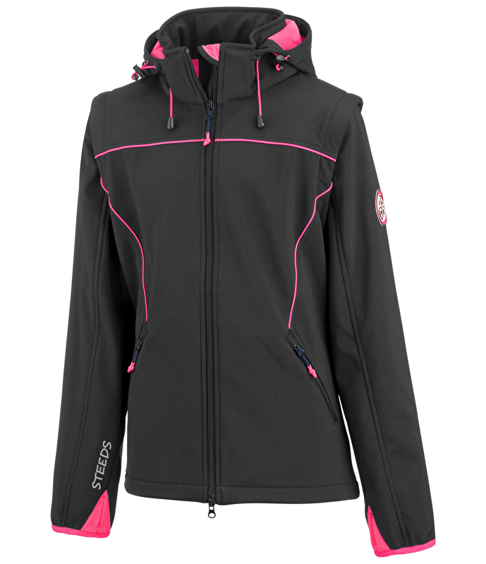 Wielofunkcyjna, sportowa kurtka softshell dla dzieci, którą można nosić jako kurtkę lub kamizelkę dzięki odpinanym rękawom. Odpinany kaptur z regulacją szerokości, dwukierunkowy zamek z przodu, elastyczne mankiety i 2-suwakowe kieszenie boczne. Kurtka jest wodoodporna, wiatroodporna i jednocześnie oddychająca, dzięki czemu jest idealnym towarzyszem do jazdy! 94% poliester, 6% elastan.
