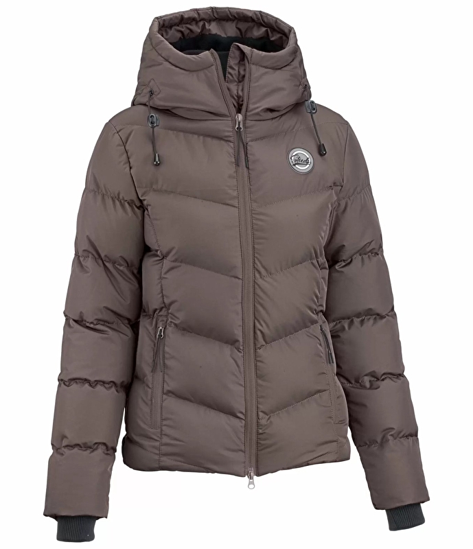 Ciepła, milutko pikowana kurtka z bardzo wysokim, regulowanym kapturem i wyjątkowo miękkim wypełnieniem z imitacji puchu. Dwukierunkowy suwak z przodu, 2 przednie kieszenie na suwak, 1 wewnętrzna kieszeń na suwak, mankiety z miękkiego, prążkowanego materiału i znaczek STEEDS na piersi.