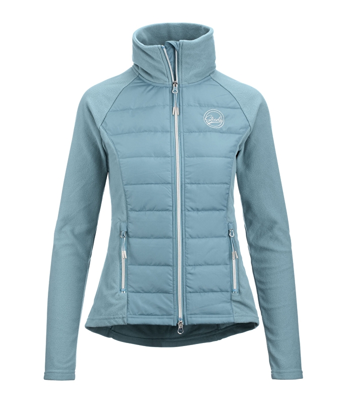 Ładne połączenie miękkiego polaru i wysokiej jakości materiału z mikrofibry. Rękawy, tył i boczne wstawki wykonane z polaru sprawiają, że kurtka jest przytulna i miękka. Wysoki, miękki polarowy kołnierz, podszyty dwukierunkowy zamek błyskawiczny z ochroną podbródka, 2 kieszenie z przodu zapinane na zamek i piękny haft na piersi. Materiał: 100% poliester.