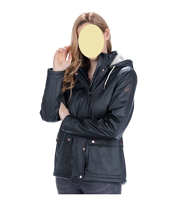 Przytulnie miękka kurtka przeciwdeszczowa dzięki całkowitej podszewce wykonanej z pluszowego polaru. Z dużym, regulowanym kapturem, również podszytym pluszowym polarem, zapinanym z tyłu na zatrzask. Wodoodporny (5000 mm) i wiatroszczelny. Ukryty dwukierunkowy zamek błyskawiczny z osłoną podbródka, 2 kieszenie z klapką zapinane na zatrzaski z przodu, 2 rozcięcia jeździeckie zapinane na zatrzaski z tyłu i nadruk STEEDS na rękawie. 100% poliuretan.