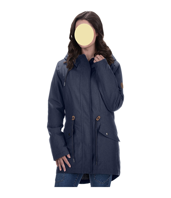 Wodoodporna, dopasowana damska parka z rozcięciem do jazdy konnej. Kaptur i talia regulowane sznurkiem. 2 kieszenie z klapką, zapinane na ukryte zamki i zatrzaski. Z ukrytym dwukierunkowym zamkiem błyskawicznym z przodu i ściągaczami w mankietach. Aplikacje z logo o wyglądzie skóry. Wiatroodporny. 100% poliester.