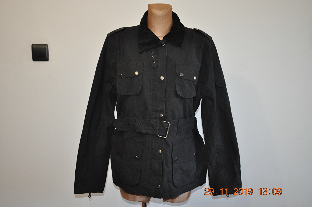 W sprzedaży kurtka marki Twin Oaks w kolorze czarnym. Kurtka wykonana w 100 % z bawełny. Nie jest wodoodporna. To starszy model kurtki jeździeckiej, bardzo klasyczny i elegancki. Kurtka zapinan na mocny zamek z przodu, dodatkowo zapinana na napy. Posiada sztruksowy kołnierzyk. Liczne kieszenie na napy nawet na rękawie.