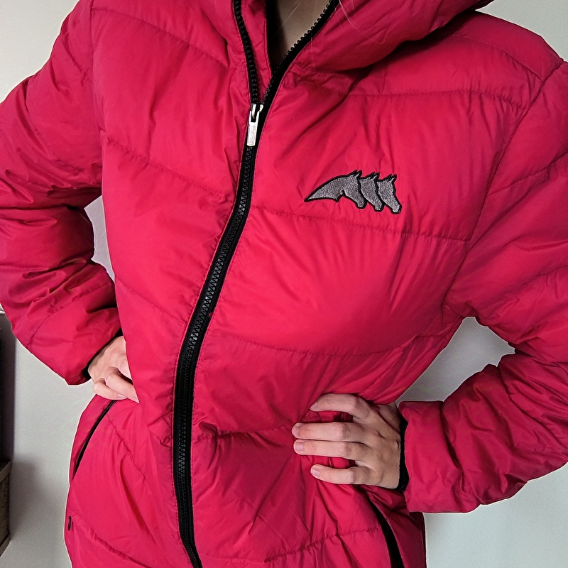Kurtka jezdziecka Equiline. Zimowa puchowa. Czerwona. Idealna dla wyższych osób. Ma duży kaptur nie odpinany. Logowanie Equiline na lamówkach. Kryte kieszonki. Nie ma podszycia, materiał od wewnątrz taki jak z zewnątrz. Stan dobry. Wydaje mi się że ma lekkie plamy w kilku miejscach ale w kolorze bardzo nikną, nie rzucając się w oczy. Rozmiar L szerokość 54 cm x2 dl całkowita od 65-7 cm Dl rękawa od pachy 54 cm