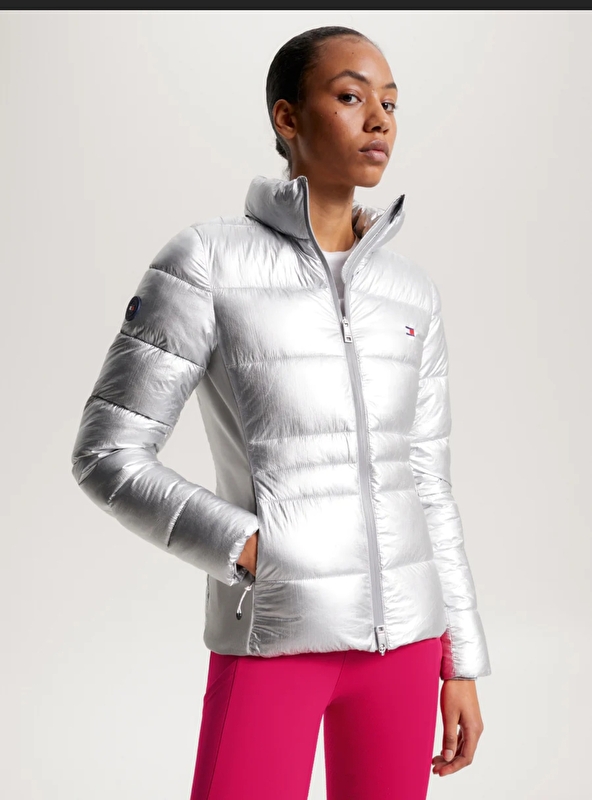Kurtka jeździecka zimowa Tommy Hilfiger Equestrian w kolorze srebrnym . Mega ciepła, ma spore wypełnienie. W niej napewno nie zmarzniesz ;) po boku ma elastyczne wstawki dzięki czemu łatwo dopasujesz ją do swojej sylwetki. Logowanie na ramieniu i piersi. Świetnie leży na sylwetce. Mimo braku kaptura ma kołnierz który fajnie otula szyję. Ma kieszeni e na zamki. A sam główny zamek jest odblaskowy. Zdecydowanie warta polecenia. Nowa bez metki. Rozmiar S szerokość 47 cm x2 elastyczna, dl całkowita od ramienia 60 cm Dl rękawa 64 cm wew 50 cm.