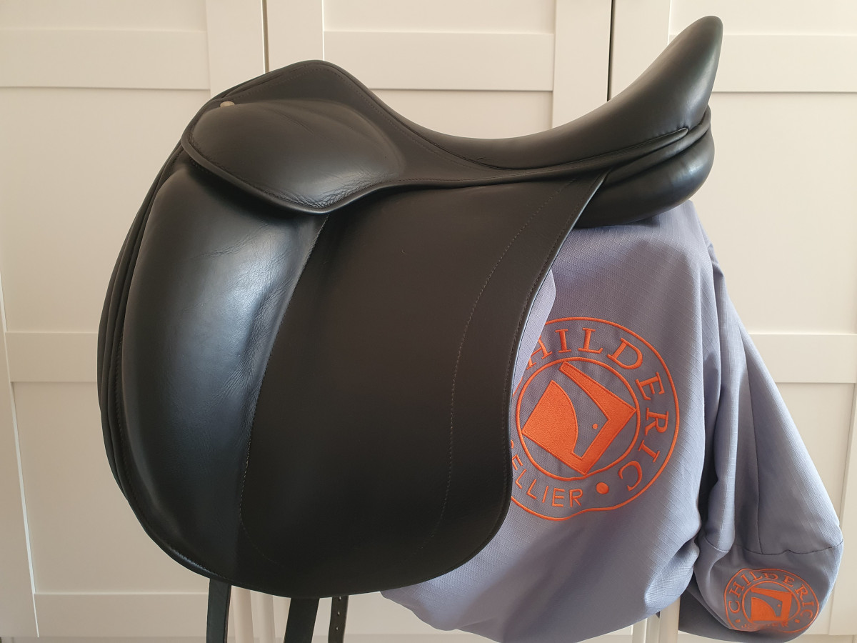 Siodło ujeżdżeniowe francuskiej firmy Luc Childeric, czarne, popularny i lubiany model DAC, jednotybinkoWE. Siodło używane, w dobrym stanie, posiada normalne ślady użytkowania.