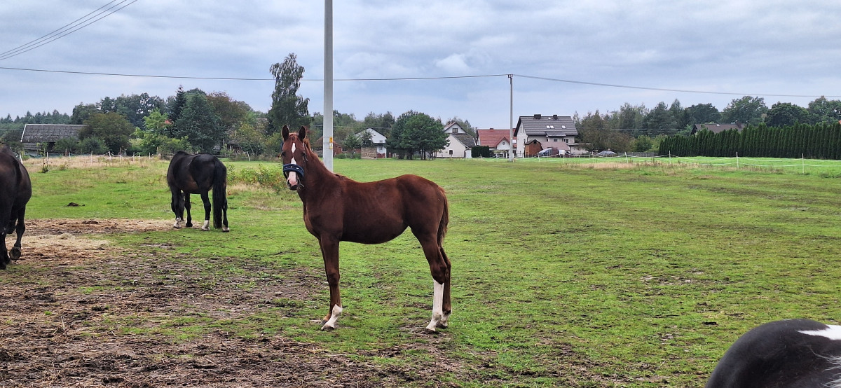 7-miesięczna, pięknie malowana klaczka ujeżdżeniowa. Polski Koń Sportowy, psiada księgę główną. Wybitny rodowód ujeżdżeniowy: ojciec niemiecki ogier oldenburski Lindgren (na ostatnich zdjęciach) po Le Formidable i First Affair. Matka po Cardamon.