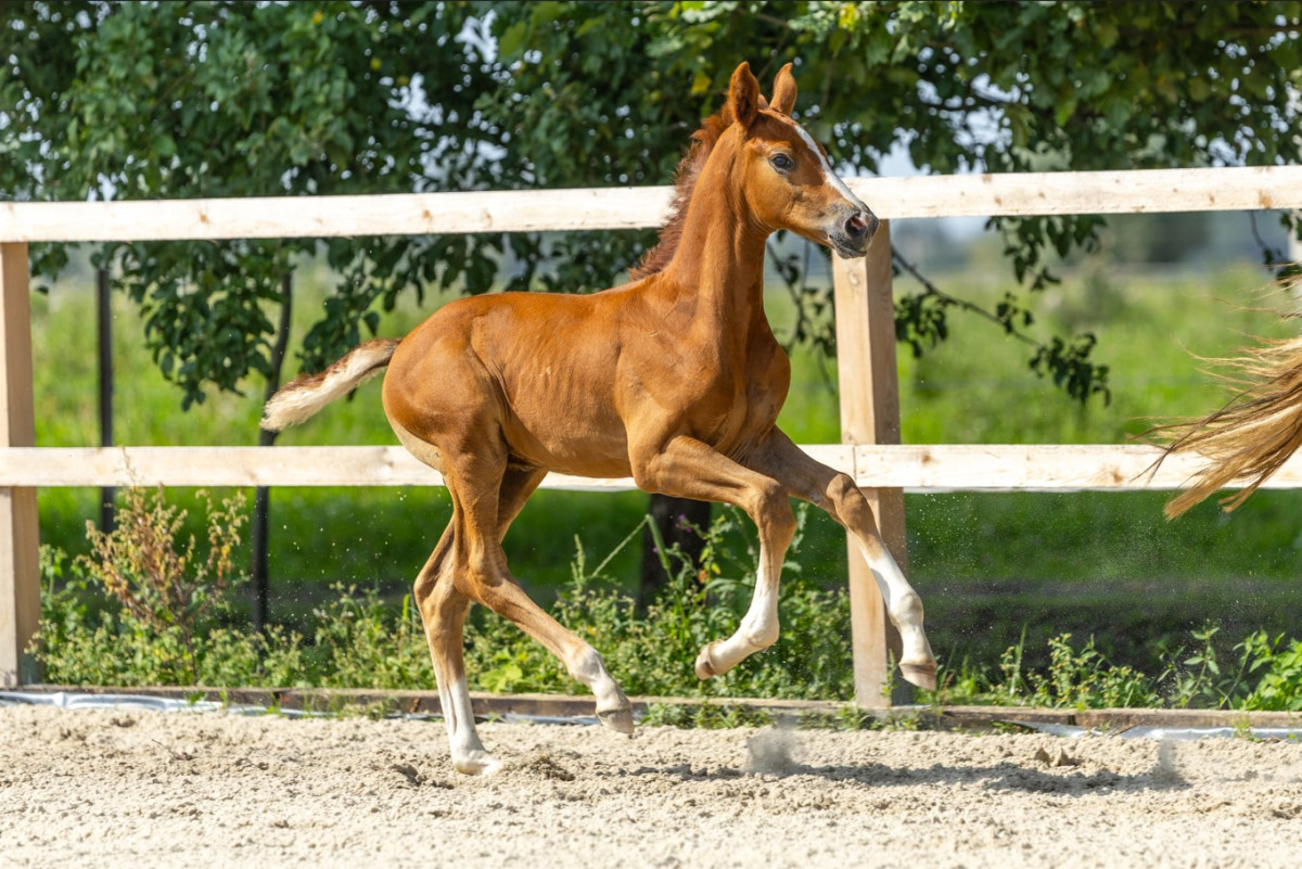 Ogierek własnej hodowli, wychowany w grupie rówieśników na rozległych pastwiskach.
