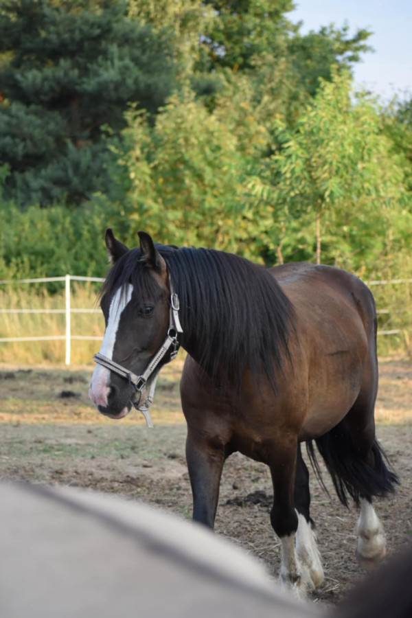 Od niedawna pod siodłem, porusza się w trzech chodach, do dalszej pracy. Pod siodłem nie bryka. Super kompan w tereny, chodzi sami i z innymi końmi.