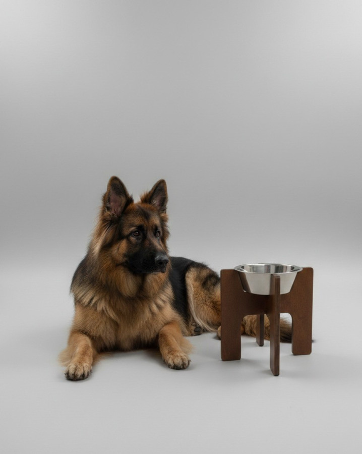 Zadbaj o wygodę swojego psa podczas posiłków dzięki naszej drewnianej misce z podwyższeniem, idealnej dla dużych psów.