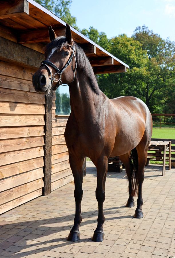 To koń, który dopiero zaczyna swoją przygodę ze sportem, ale już dziś pokazuje, że ma ogromne możliwości – zarówno w skokach, jak i WKKW. Nie startował jeszcze w zawodach, ale zdecydowanie ma do tego predyspozycje.
