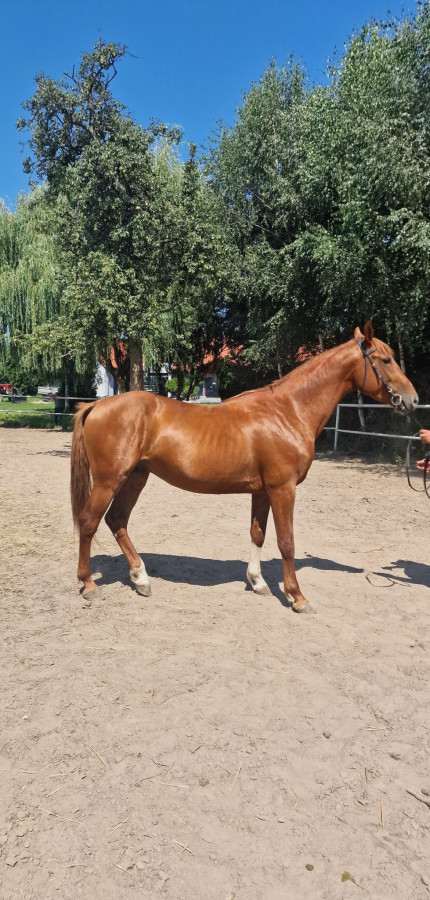 Wiek: 4 lata, urodzony 19.06.2021, o pięknej kasztanowatej maści z odmianami. Wzrost: ok.